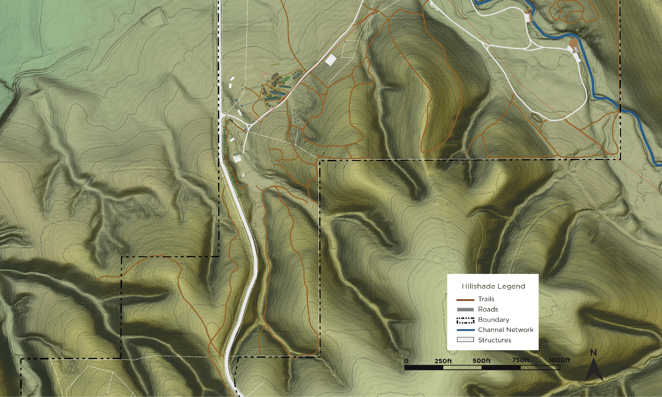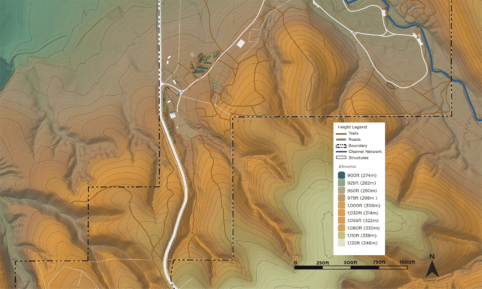 The starting point for all mapping and design work—revealing how terrain shapes water, access, and land use decisions.
