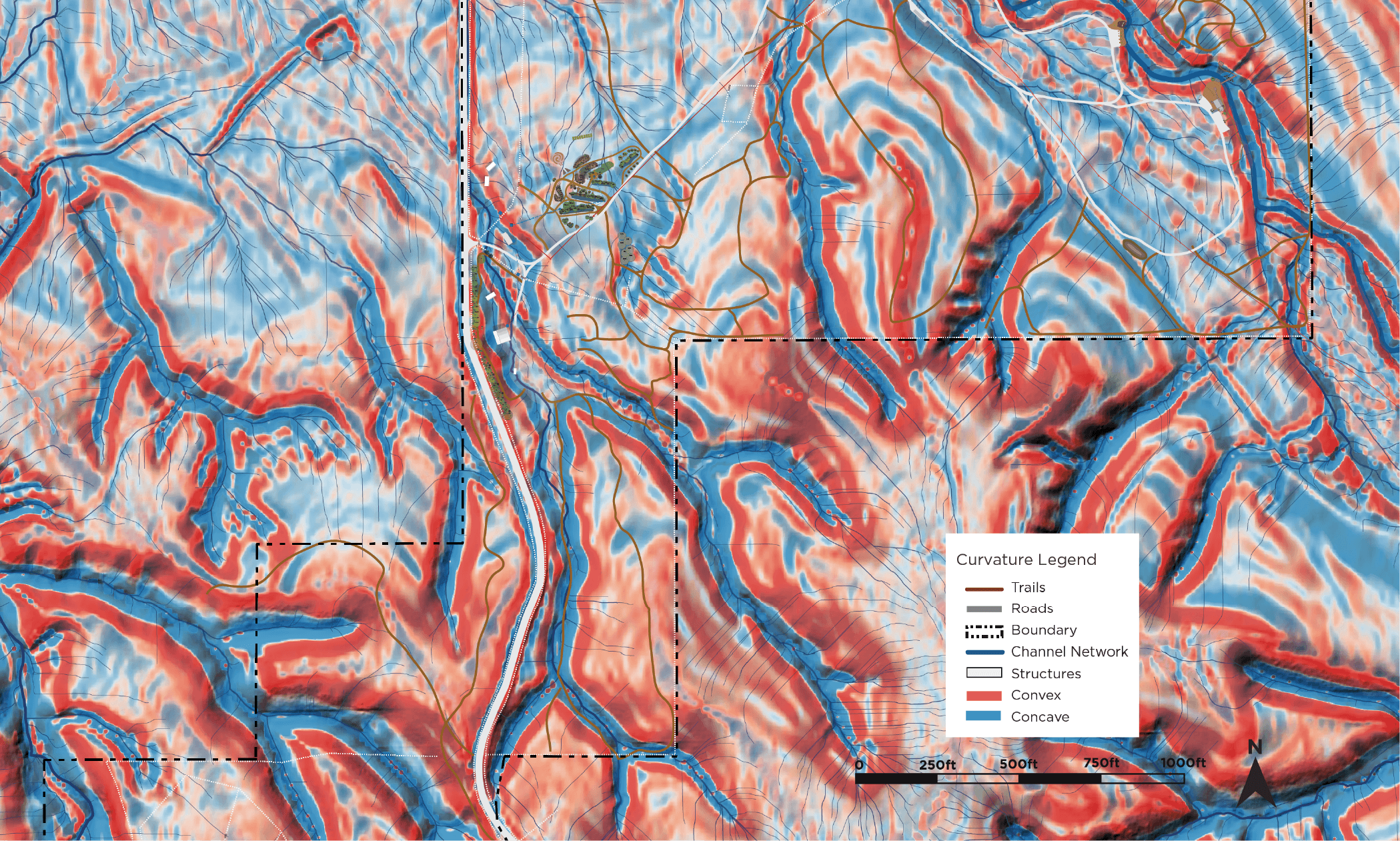Identifies where the landscape sheds or collects water, soil, and organic matter by distinguishing convex (shedding) and concave (accumulating) areas.